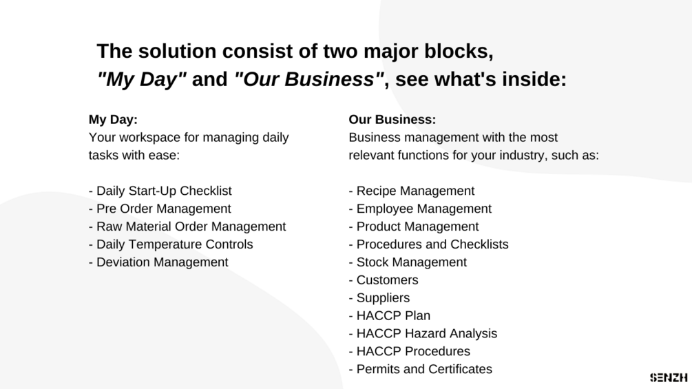 • HACCP & Compliance: Go paperless and feel confident during inspections with a robust, traceable system for food safety.